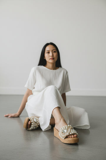 Channel laid-back beach vibes with Coastal Charm — handcrafted ivory white flats adorned with delicate...