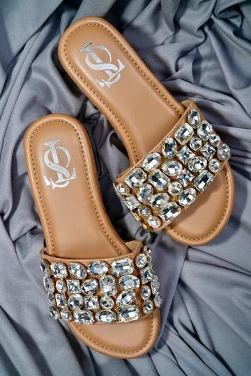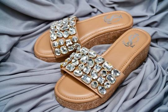 Turn heads with every step in these Crystal Luxe Wedges, designed with a comfortable 2.5-inch wedge heel and a wide strap adorned with oversized clear rhinestones. The neutral tan base makes them easy to pair with both festive and casual outfits, while the cushioned footbed ensures all-day wearability.