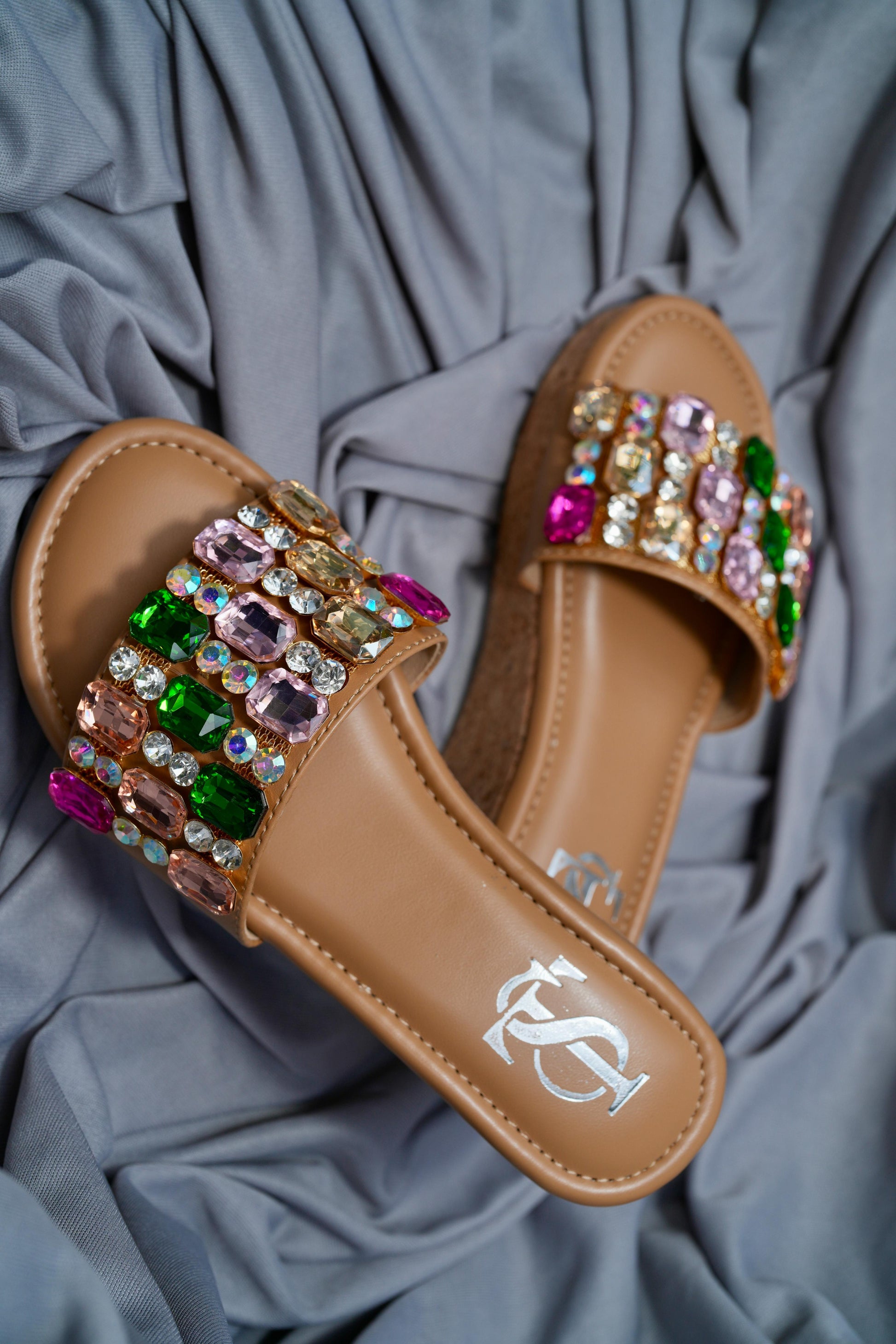 While the gems and embellishments on the flats are securely fixed, we recommend handling them with care. Excessive rubbing against surfaces or applying pressure may cause some stones to loosen or fall off. To maintain their beauty and longevity, avoid rough use or friction.