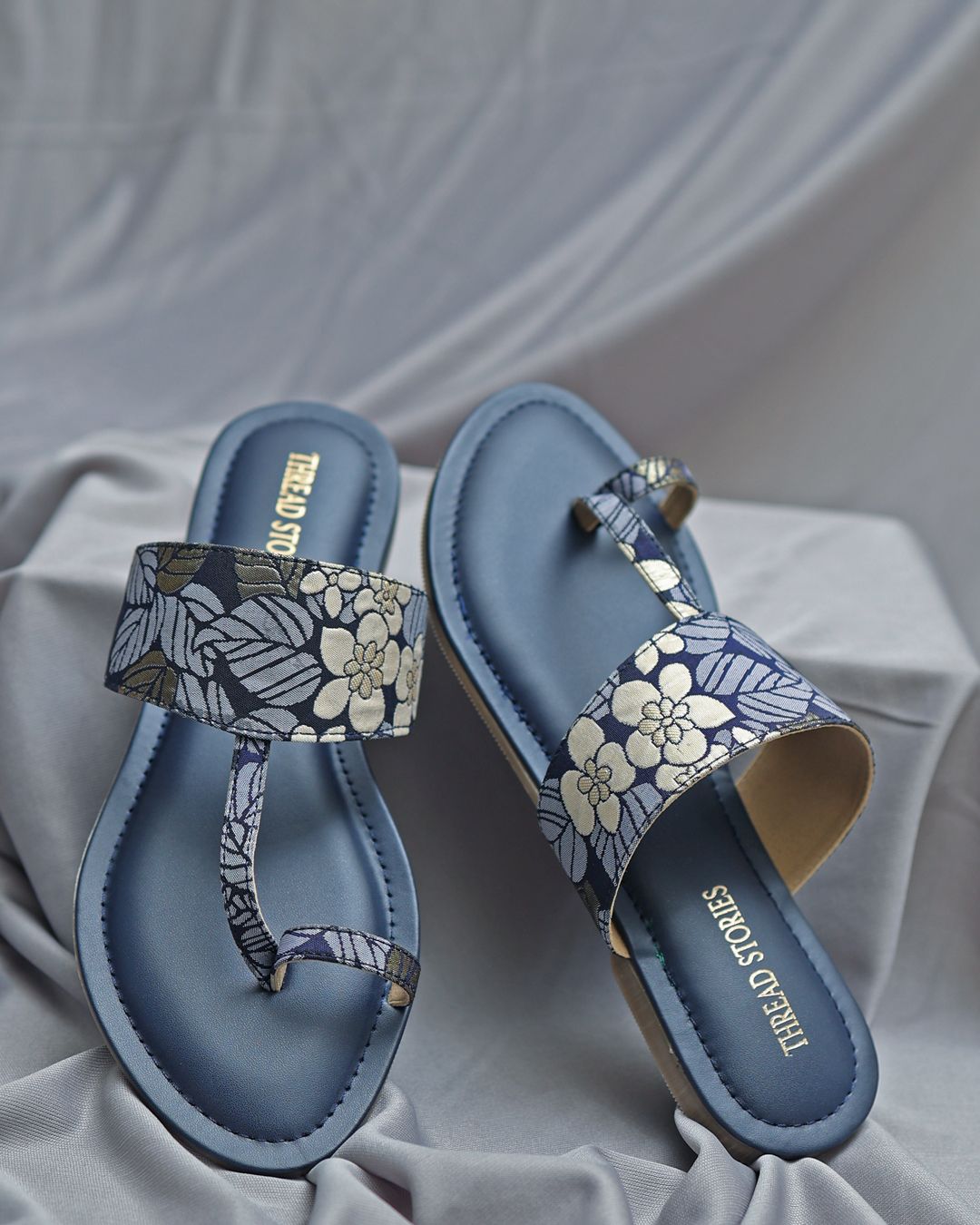 Handcrafted on a navy blue base with blue brocade print, double cushioned for extra comfort!