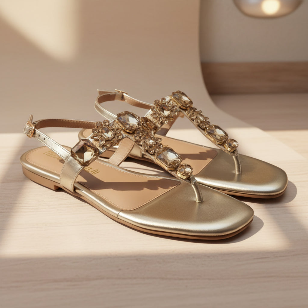 Elegant flats adorned with luminous stone embellishments, crafted to add effortless sparkle to your festive and evening looks. Designed with a comfortable sole and a sleek silhouette, these flats blend glamour with everyday ease.
