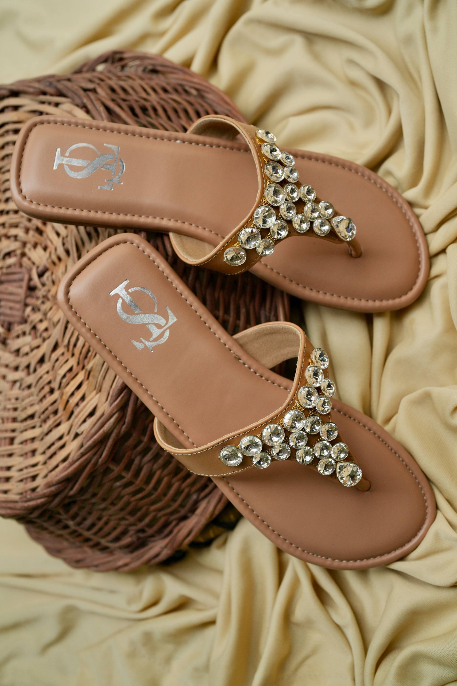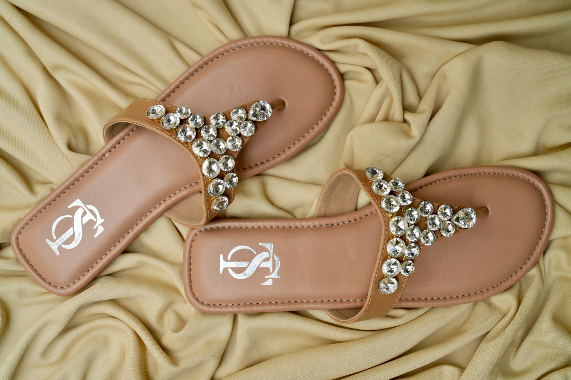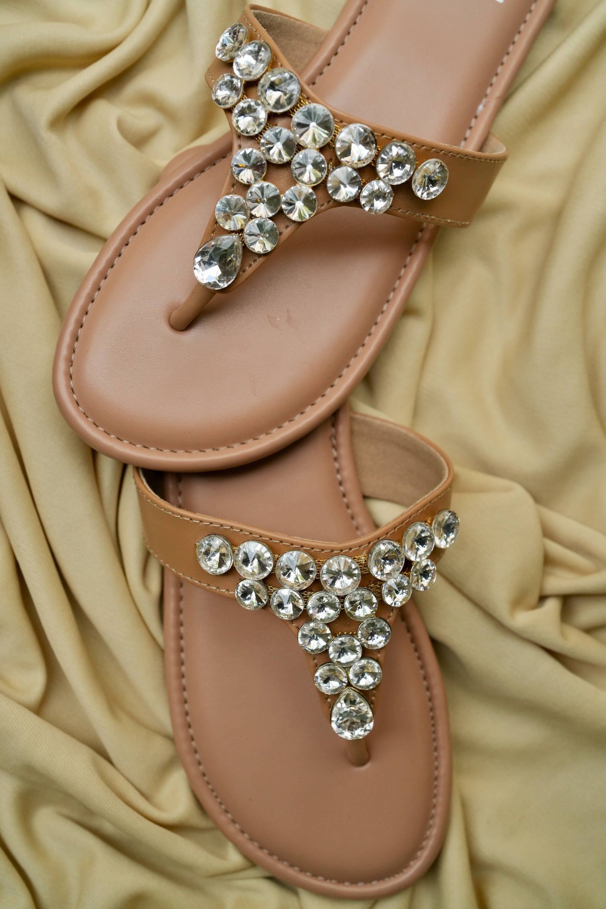 Step into timeless elegance with our Nude Crystal Charm Flats. Designed with a soft nude base and dazzling crystal embellishments across the straps, these flats are perfect for weddings, festive nights, or elevating a casual chic look. Comfort meets glamour in every step.