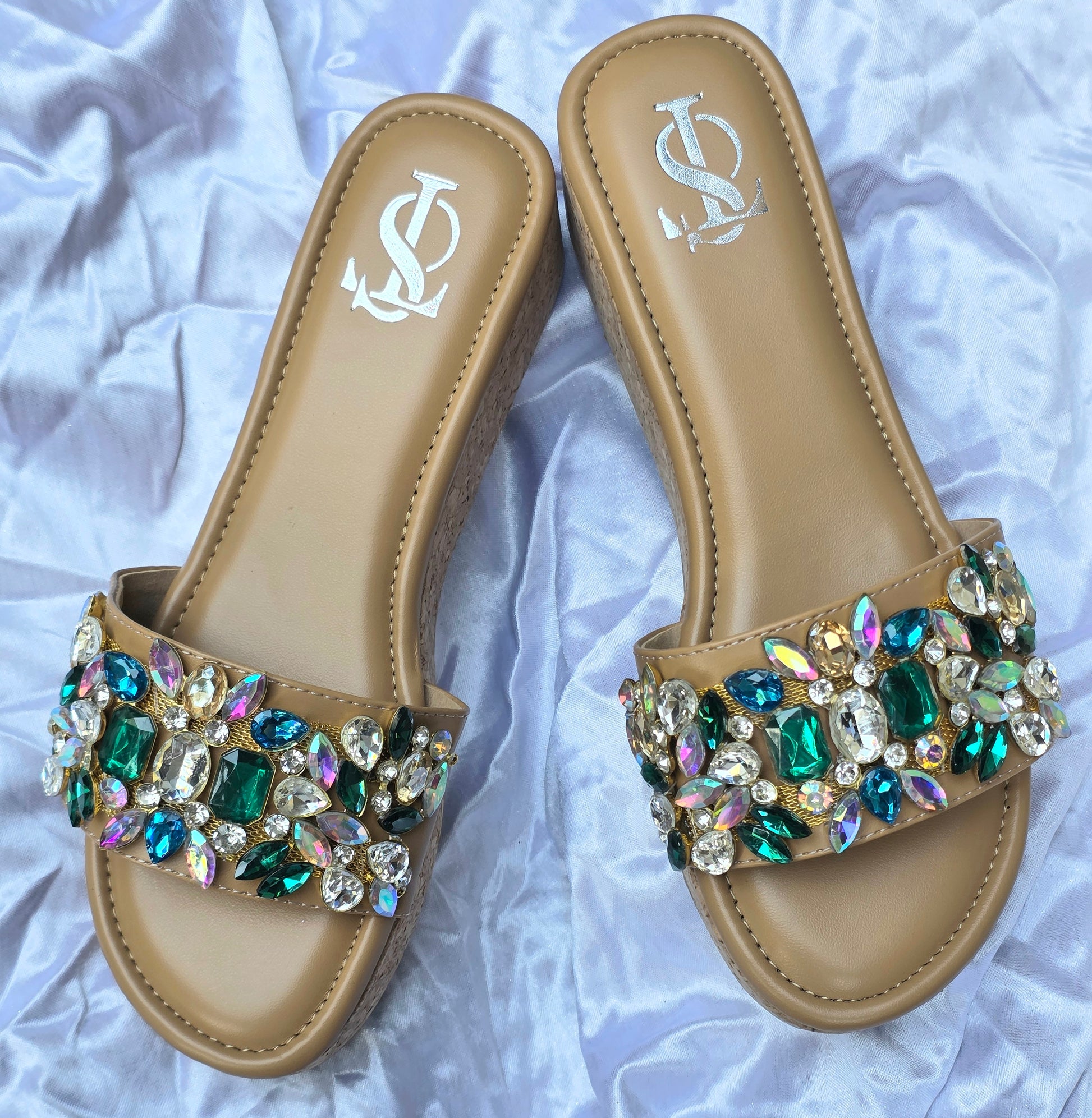While the gems and embellishments on the flats are securely fixed, we recommend handling them with care. Excessive rubbing against surfaces or applying pressure may cause some stones to loosen or fall off. To maintain their beauty and longevity, avoid rough use or friction.