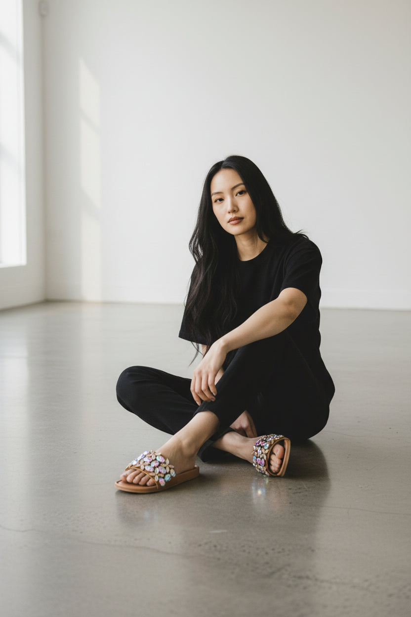 While the gems and embellishments on the flats are securely fixed, we recommend handling them with care. Excessive rubbing against surfaces or applying pressure may cause some stones to loosen or fall off. To maintain their beauty and longevity, avoid rough use or friction.