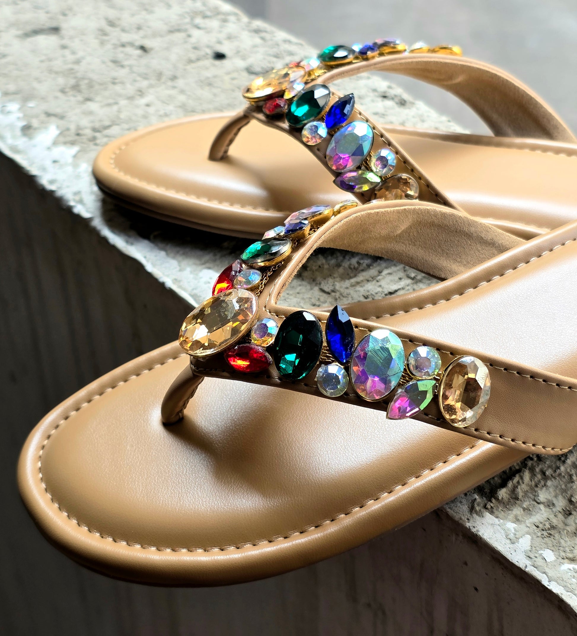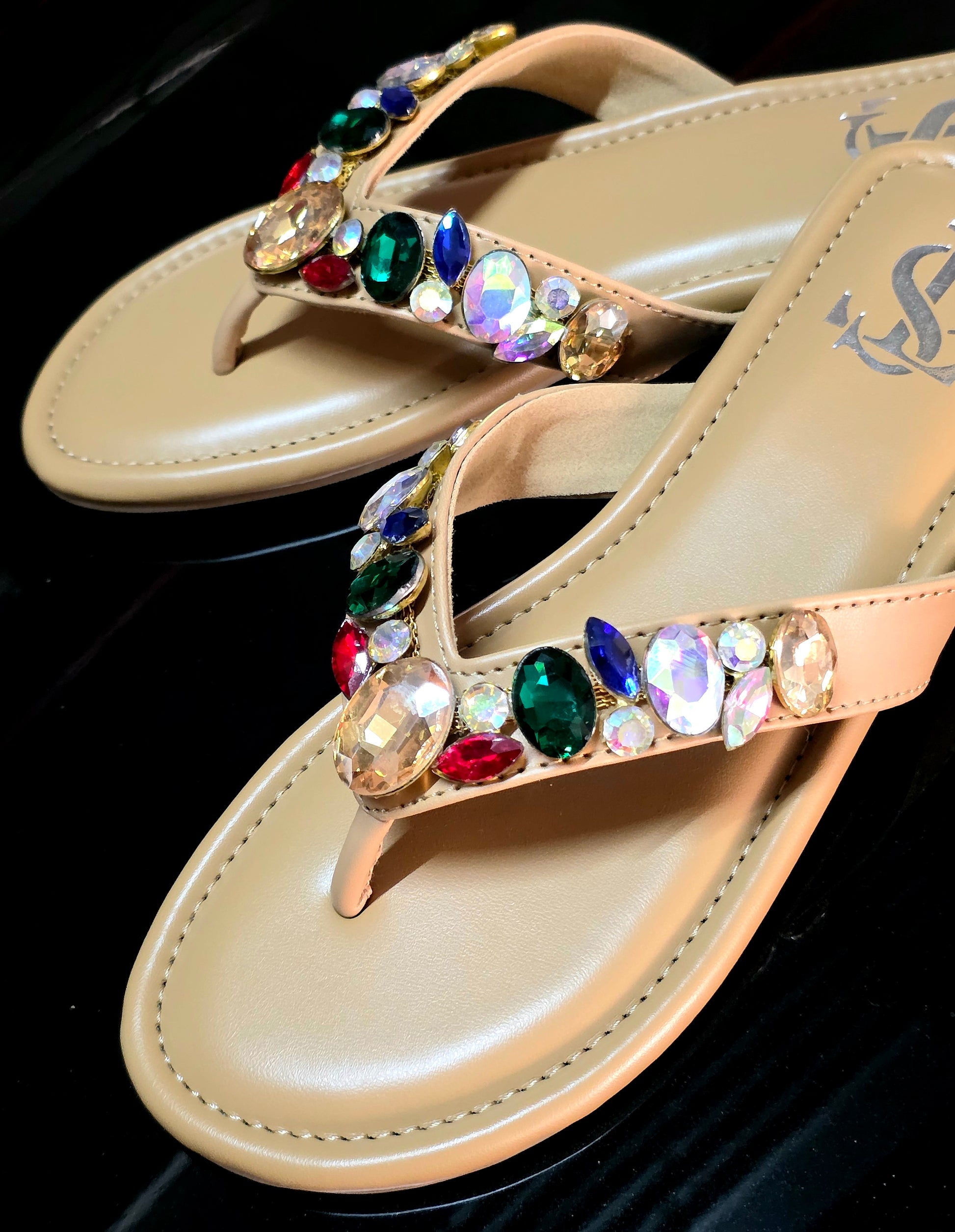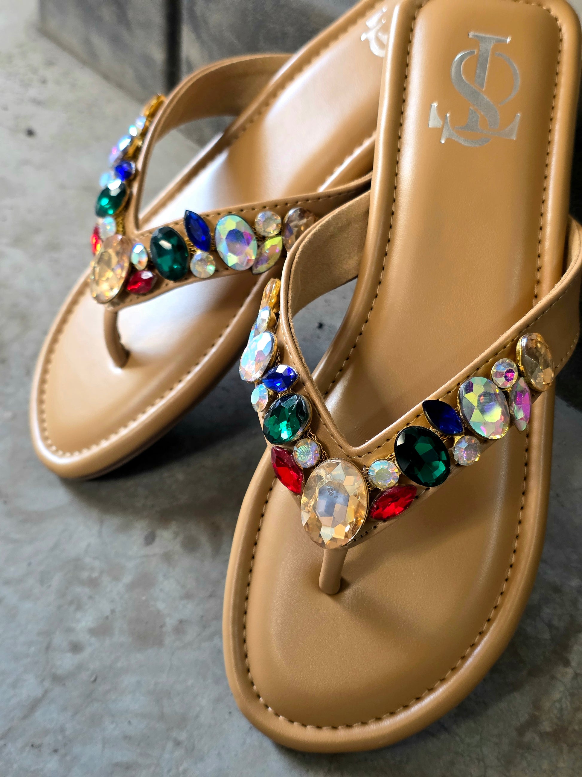 While the gems and embellishments on the flats are securely fixed, we recommend handling them with care. Excessive rubbing against surfaces or applying pressure may cause some stones to loosen or fall off. To maintain their beauty and longevity, avoid rough use or friction.