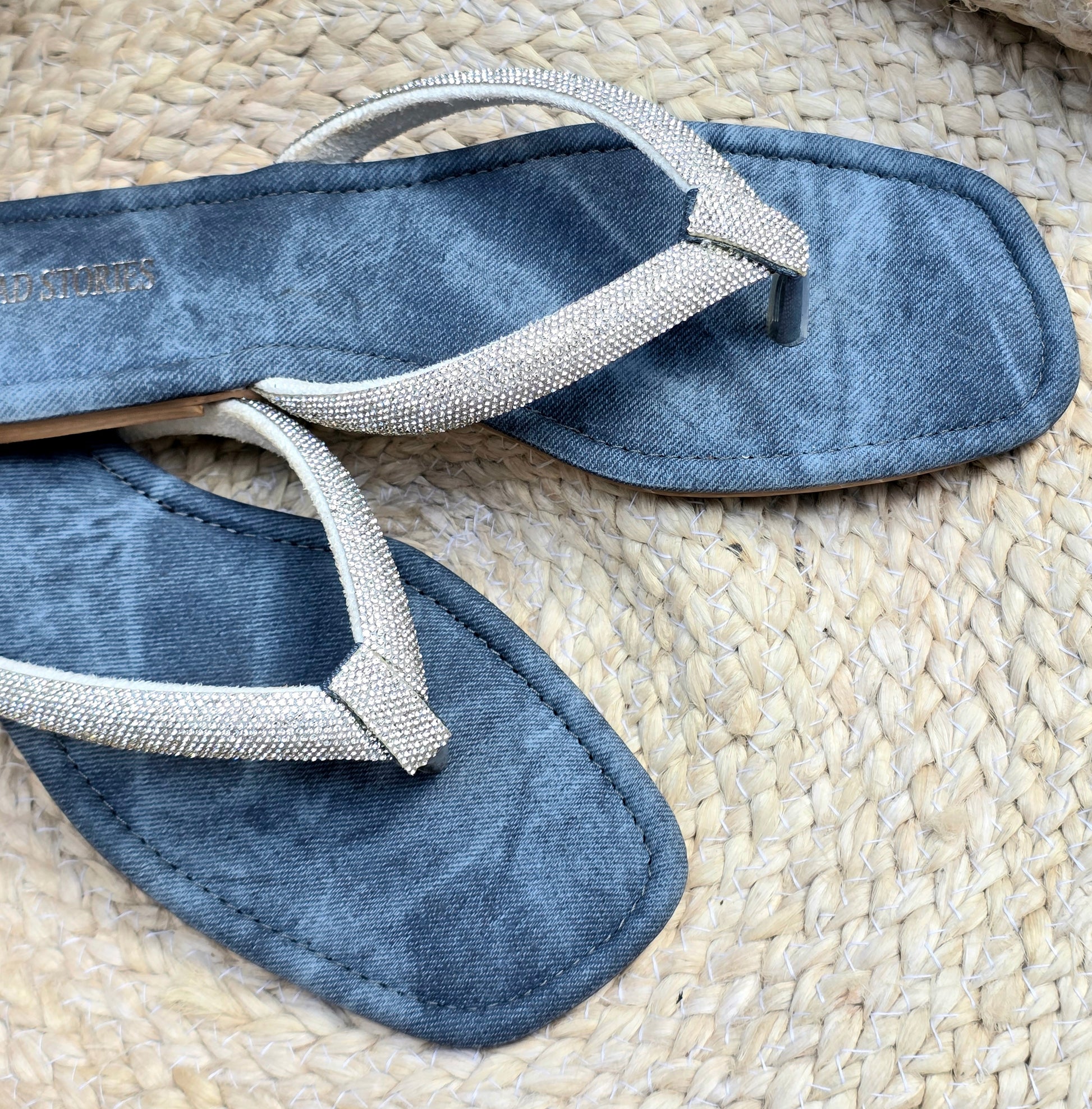 Denim tones, rhinestone tops — Dazzy flats are blingy, breezy, and bold.