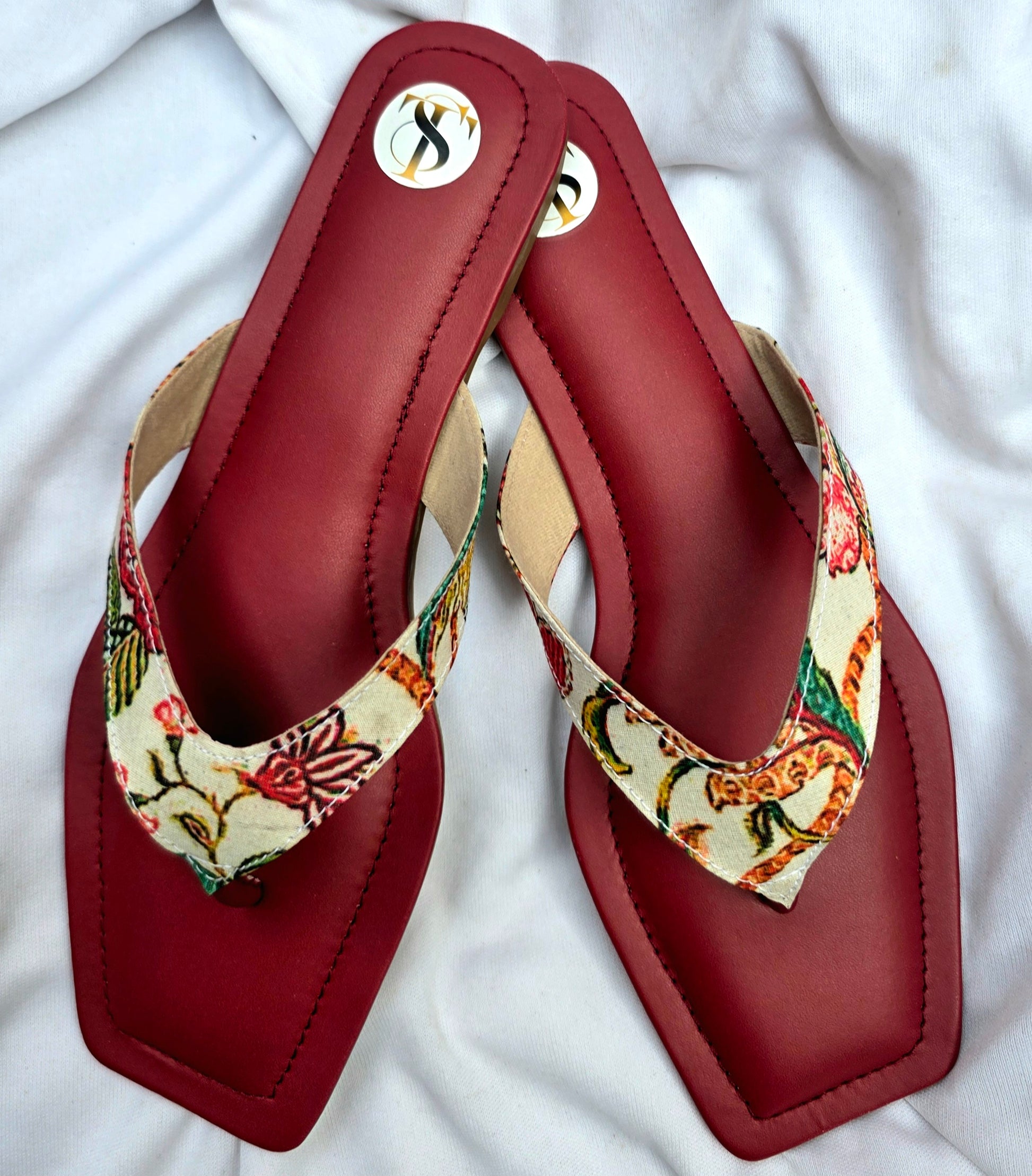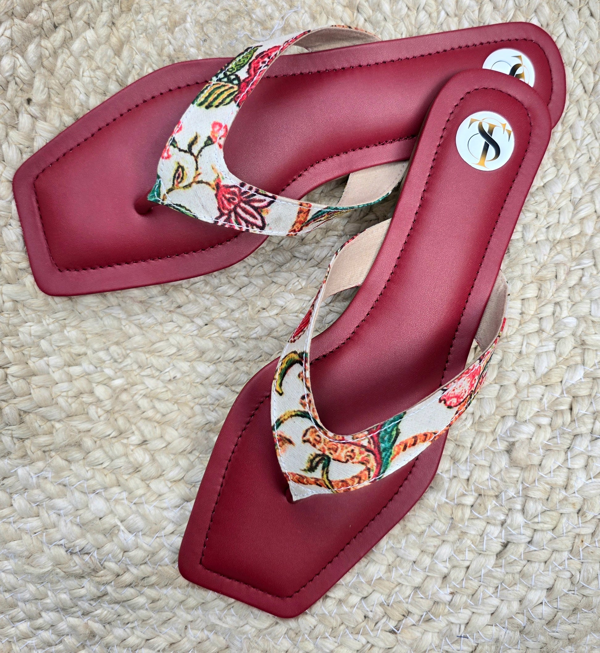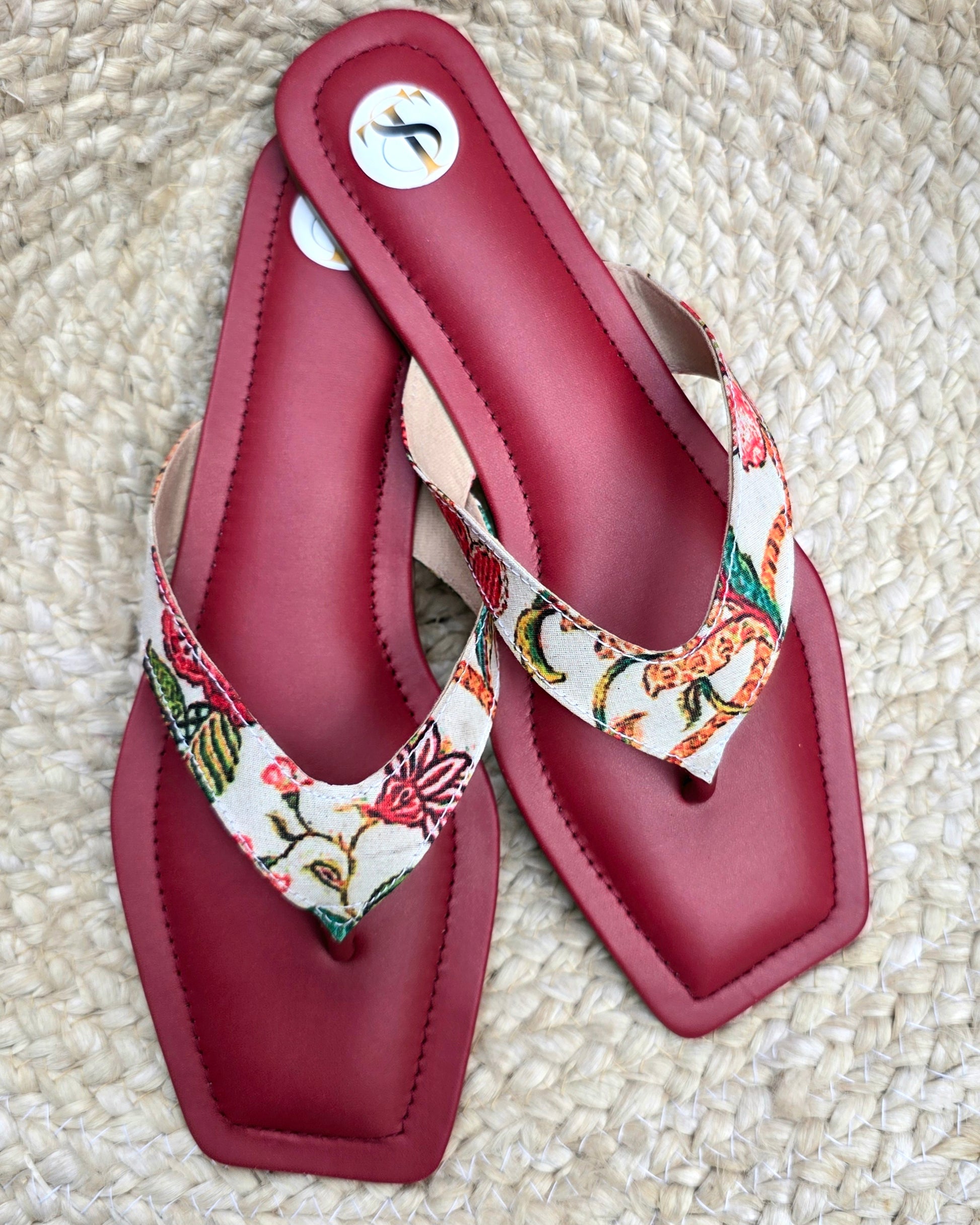 Floral Slip Ons: Maroon