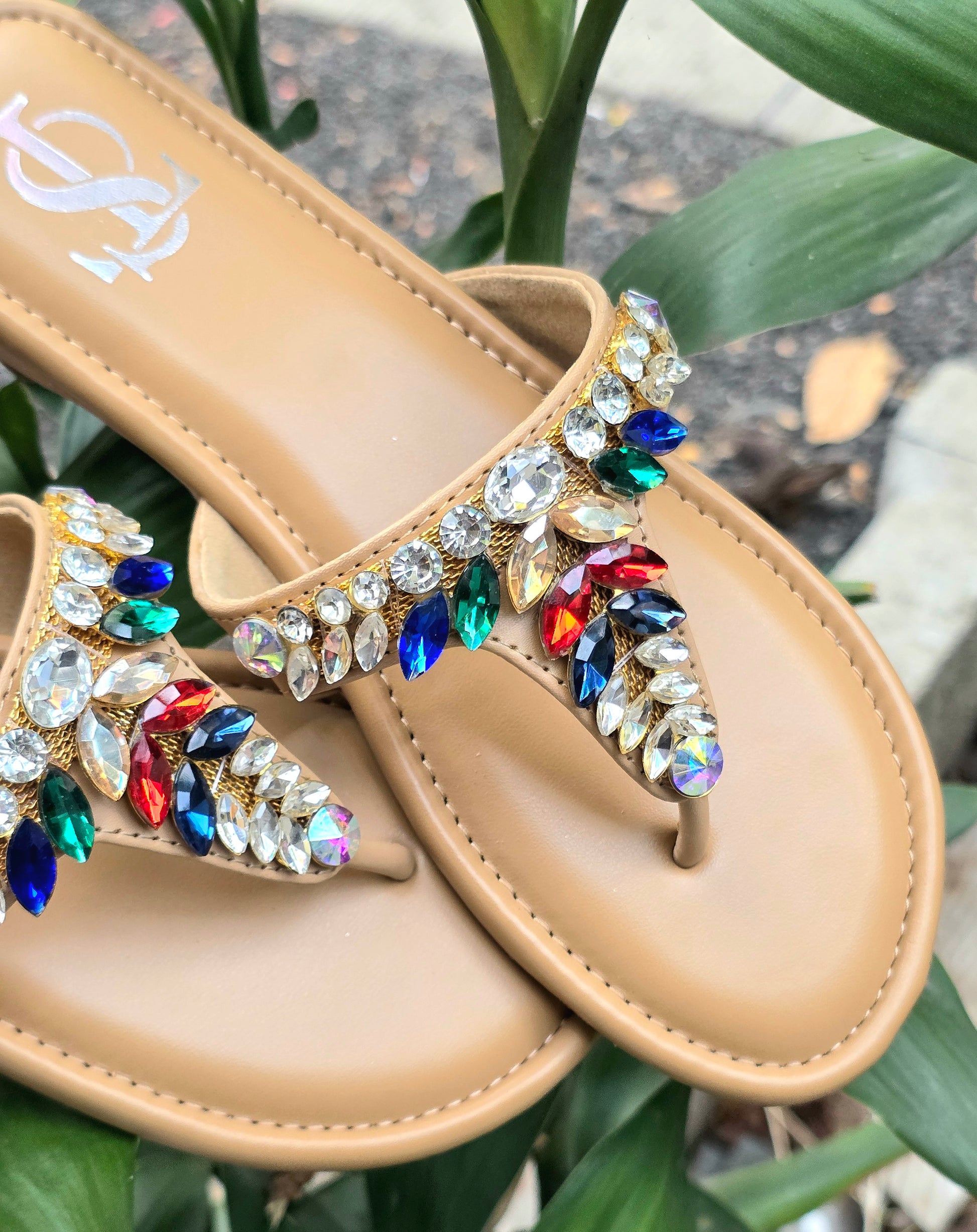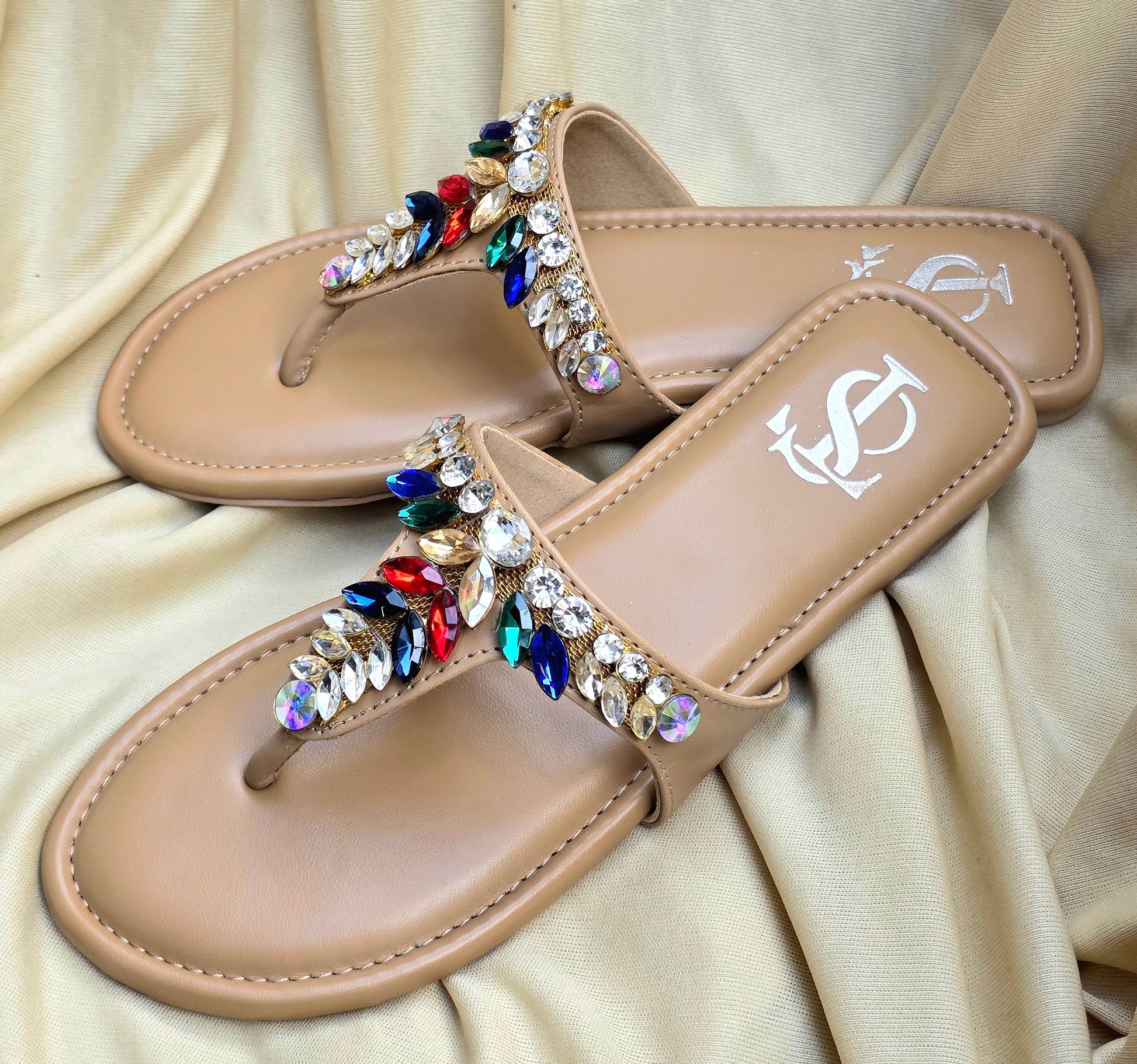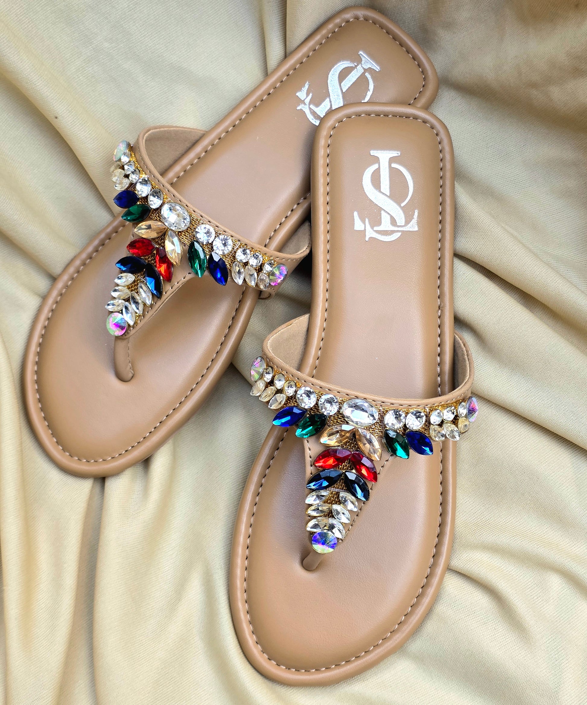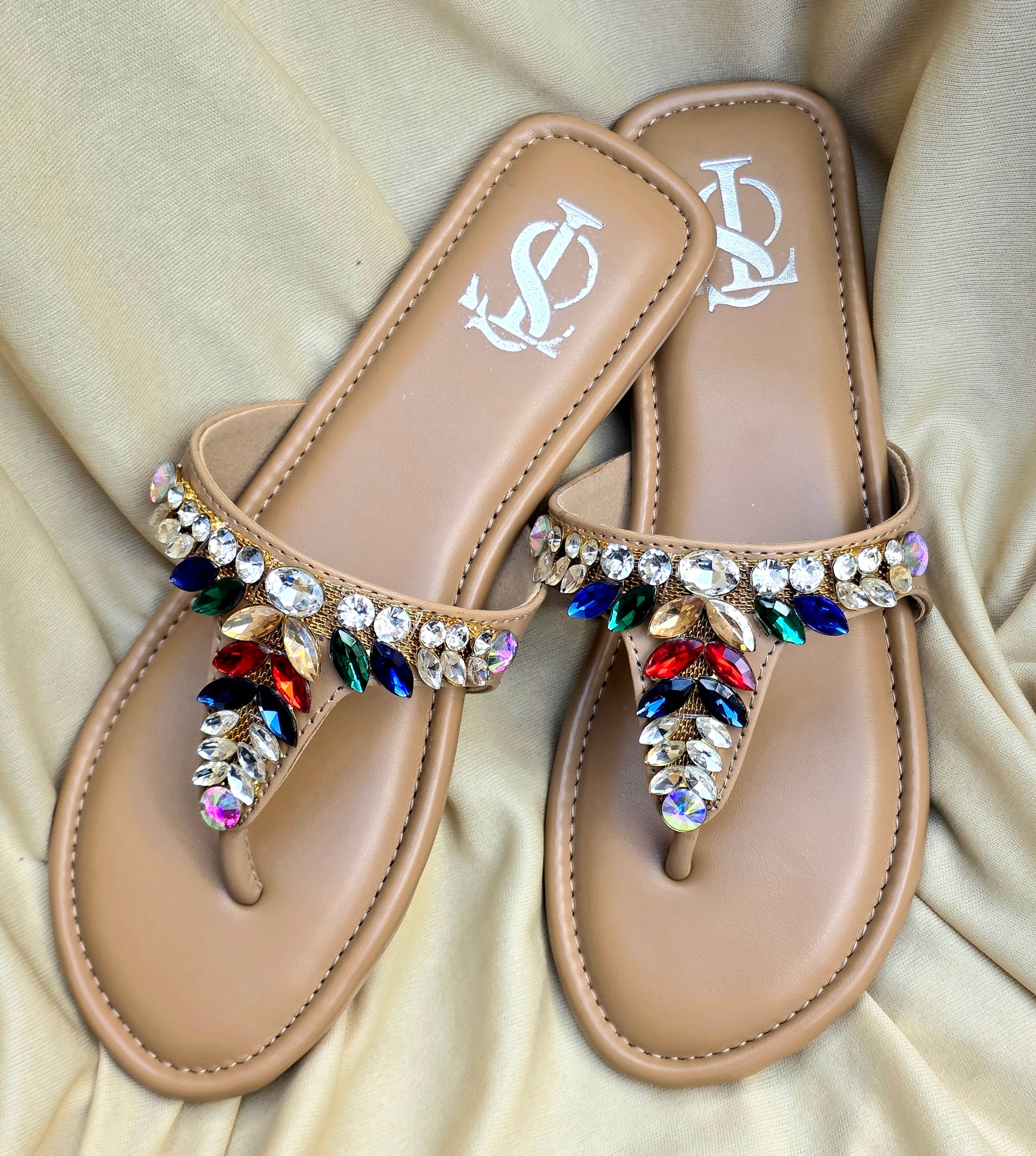 Designed in a soft nude base with vibrant crystal embellishments, these sandals add instant elegance to any outfit. Perfect for festive looks, brunch dates, or vacations.