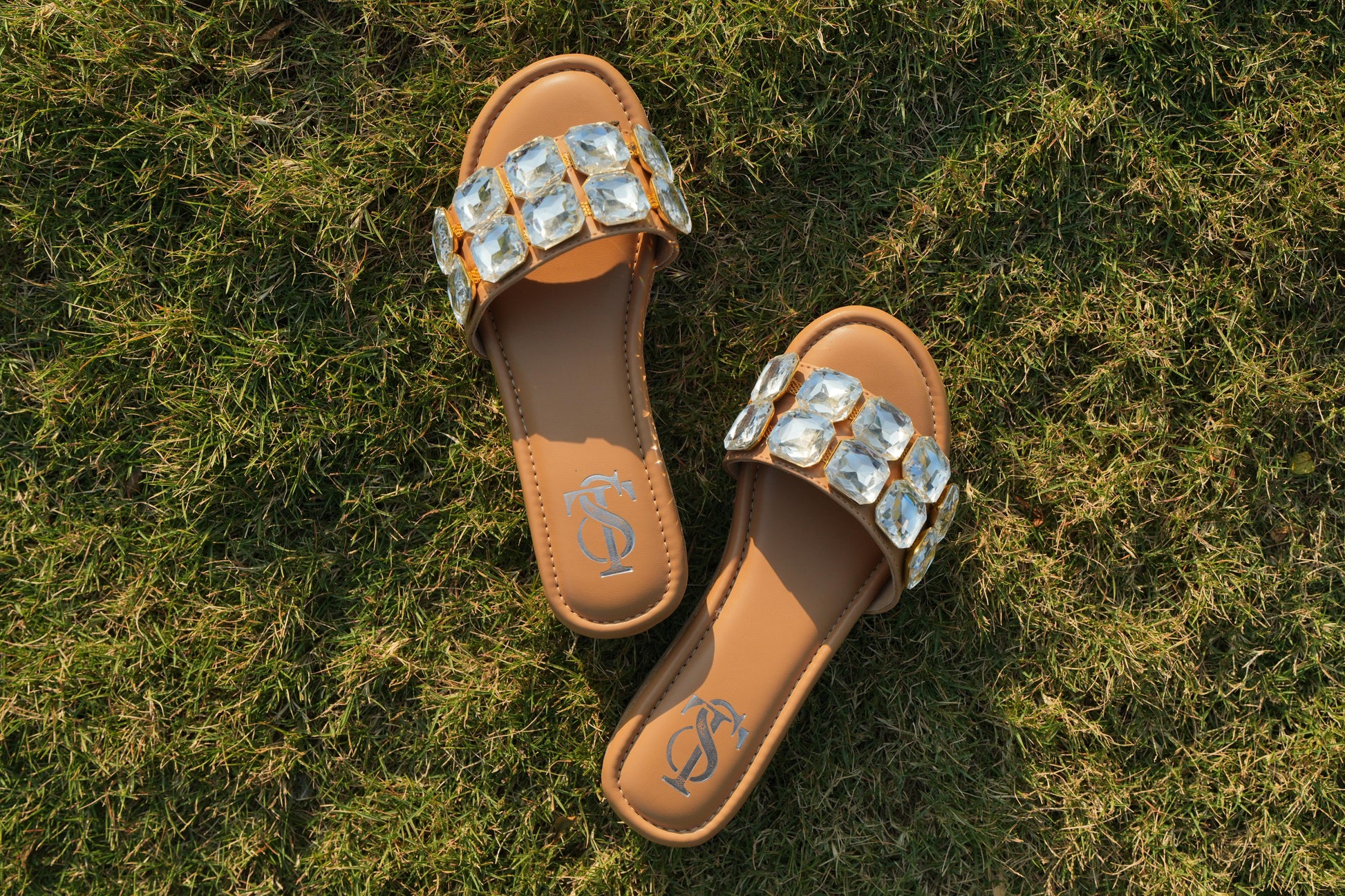 While the gems and embellishments on the flats are securely fixed, we recommend handling them with care. Excessive rubbing against surfaces or applying pressure may cause some stones to loosen or fall off. To maintain their beauty and longevity, avoid rough use or friction.