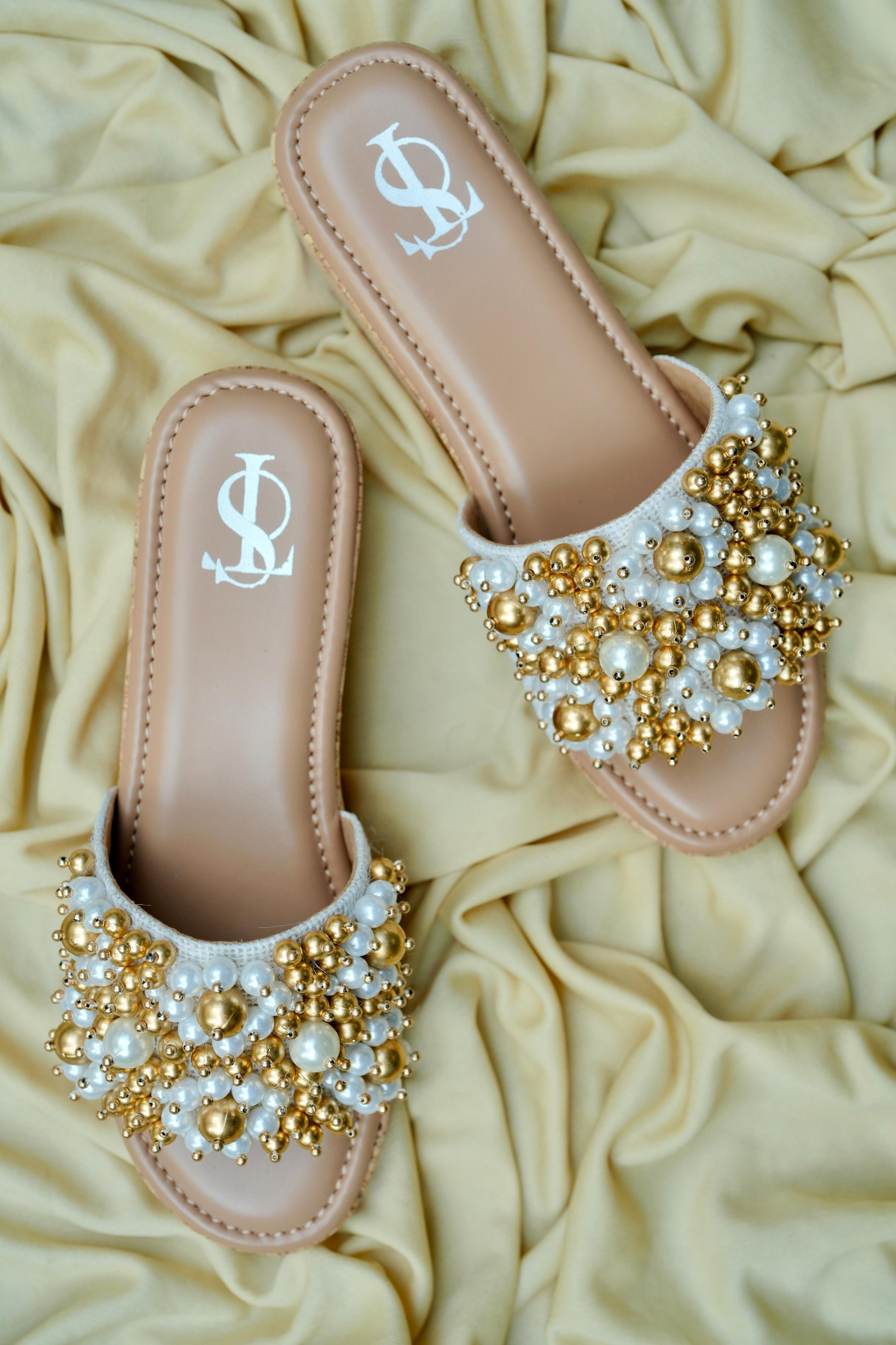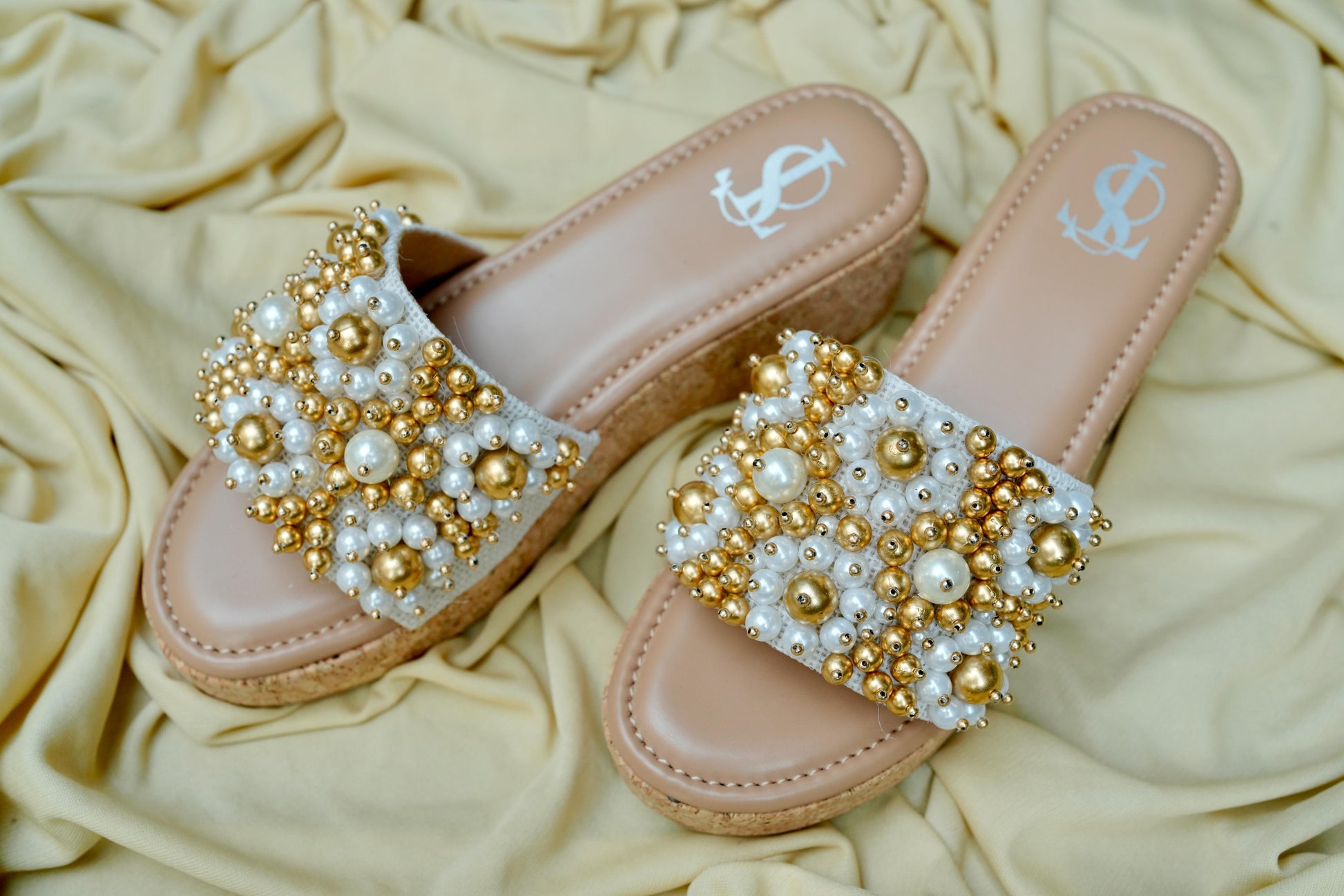 While the gems and embellishments on the flats are securely fixed, we recommend handling them with care. Excessive rubbing against surfaces or applying pressure may cause some stones to loosen or fall off. To maintain their beauty and longevity, avoid rough use or friction.