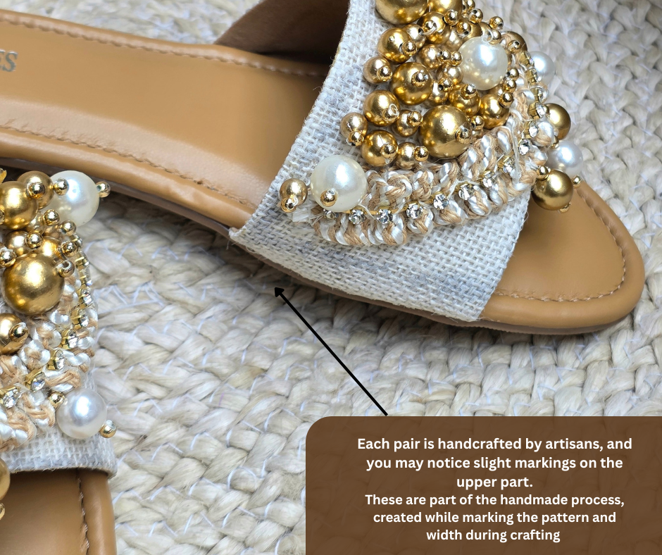A refined take on our bestselling pearl design — this version features delicate mini pearls and silver bead clusters for a softer, more intricate look. Hand-embroidered on textured jute, it's a subtle statement with just the right hint of shimmer.