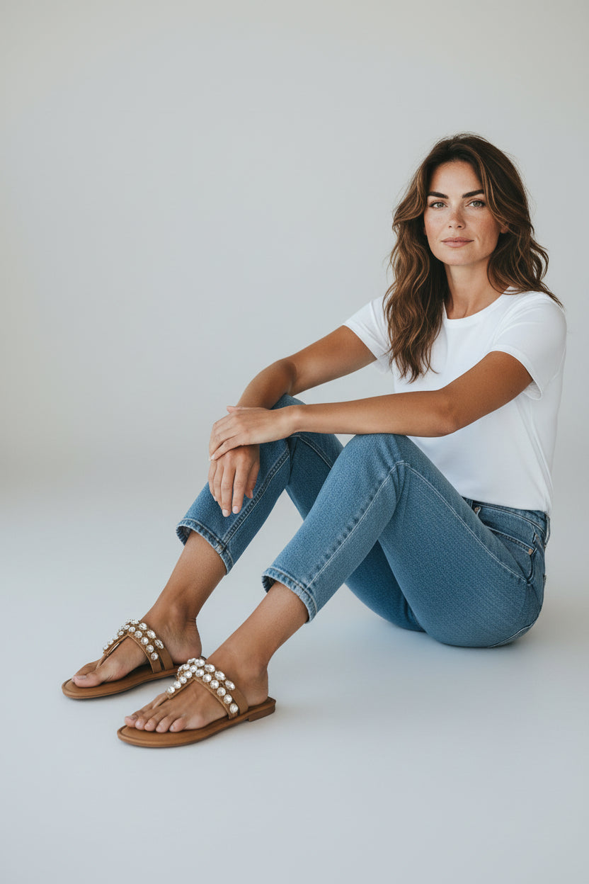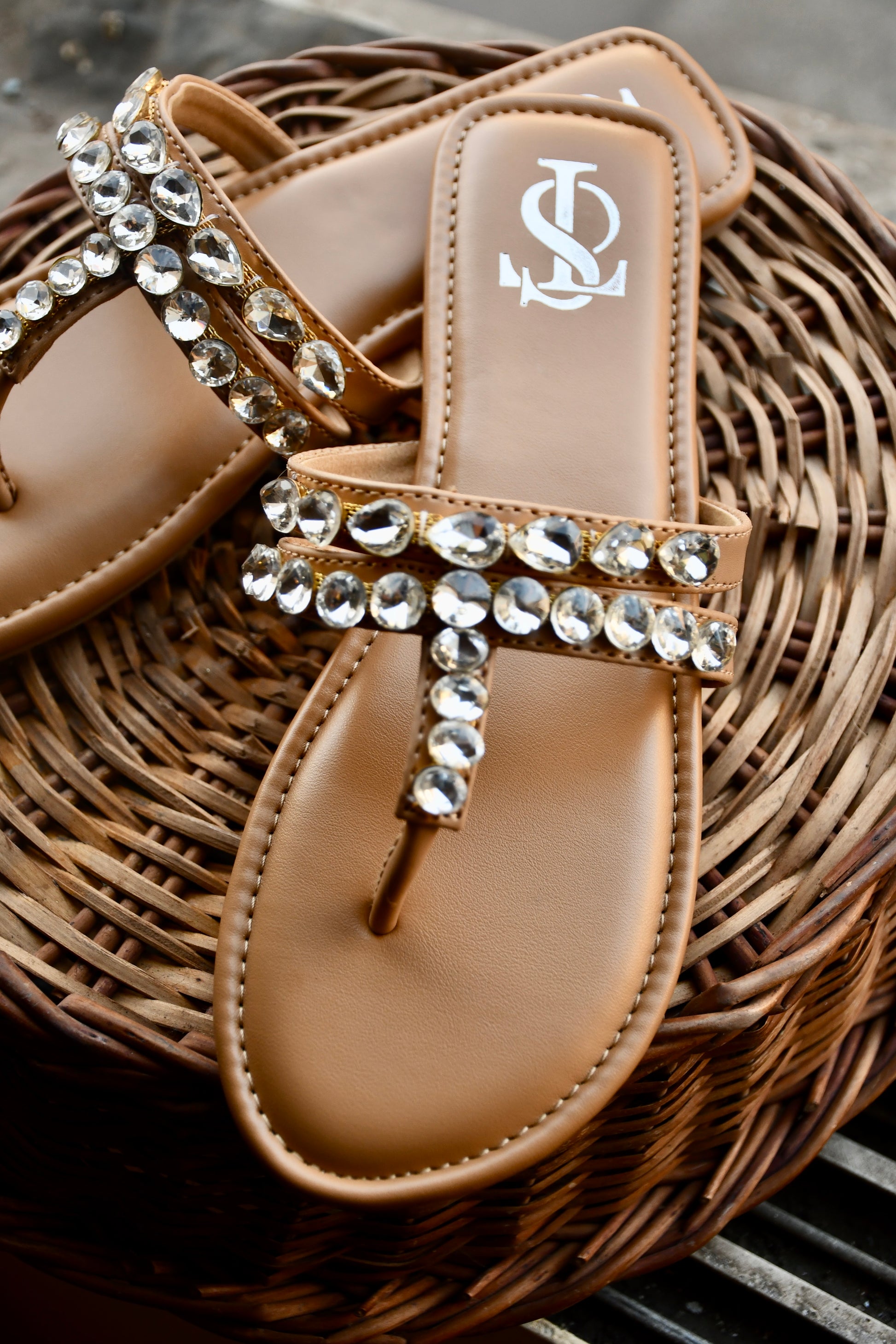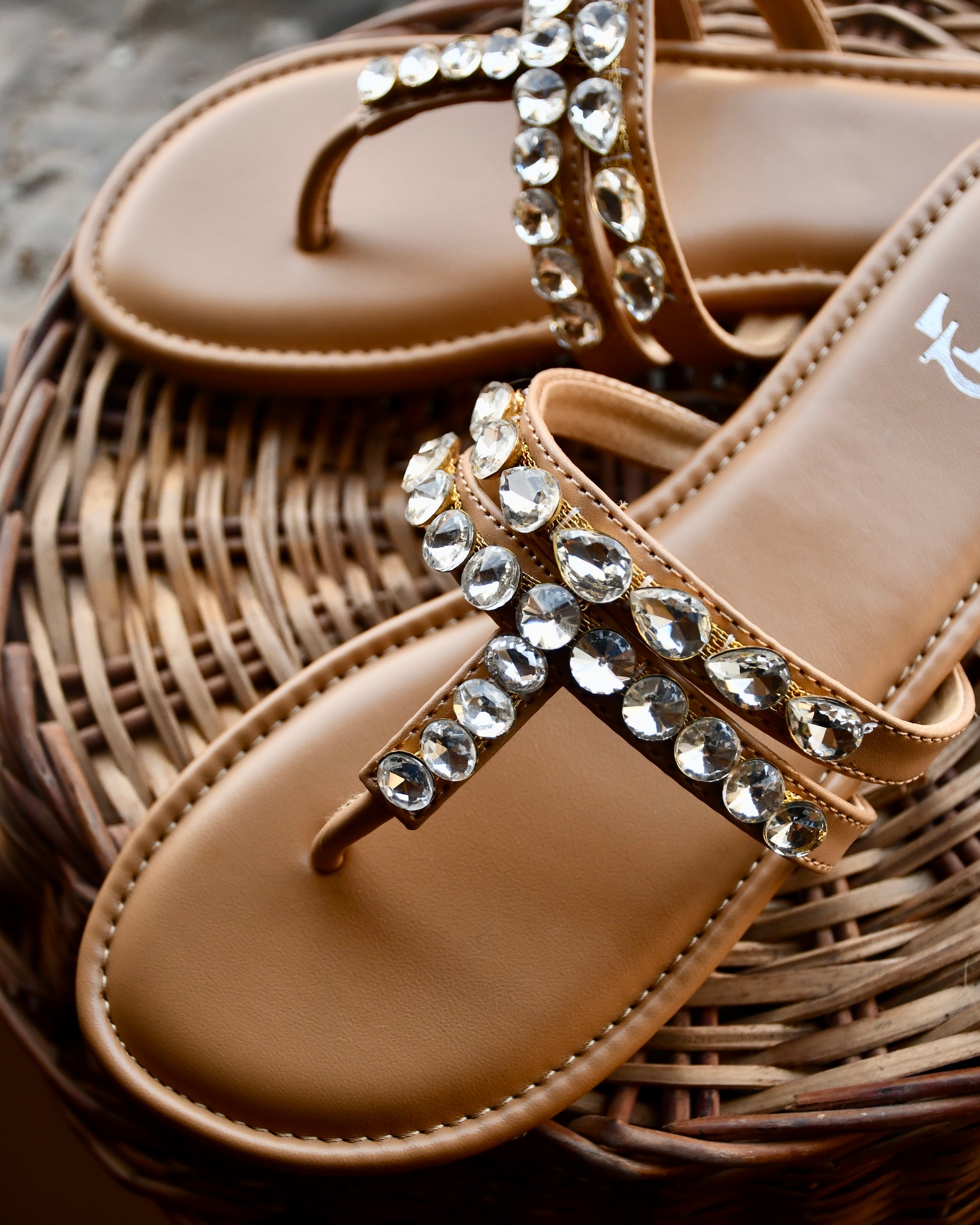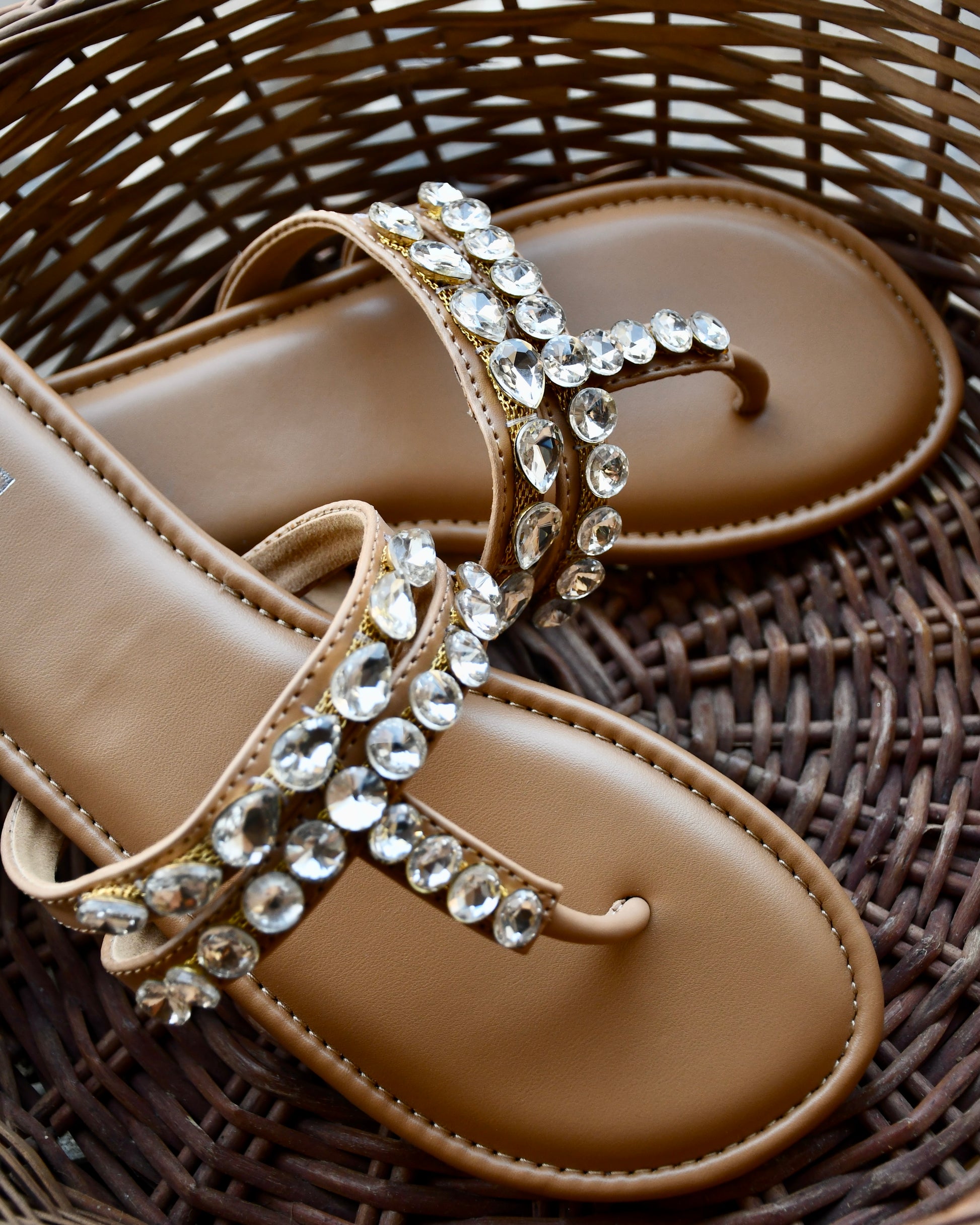 Adorned with crystal straps, these nude sandals redefine chic elegance. Lightweight, eye-catching, and oh-so-comfy — perfect for day-to-night looks.