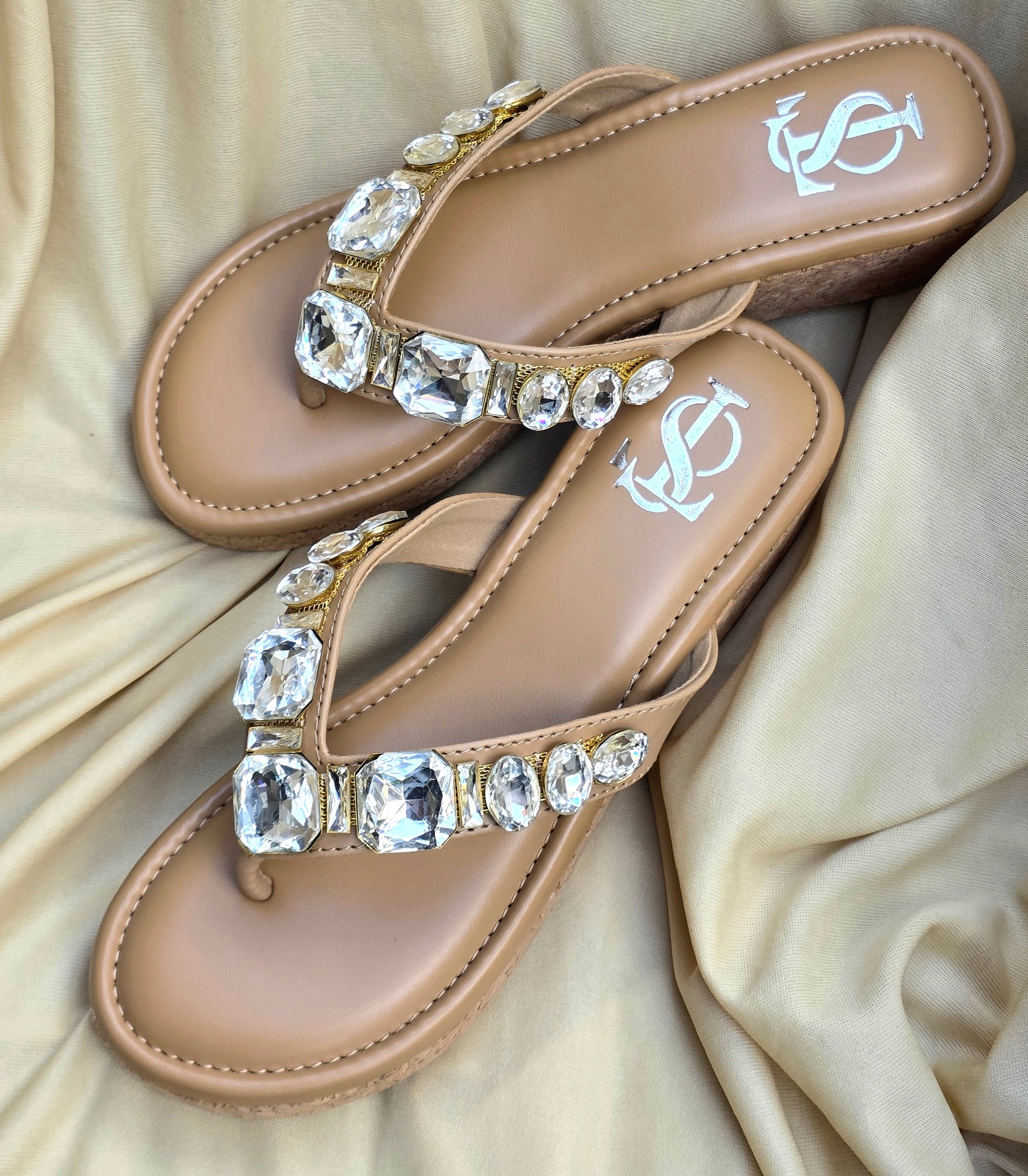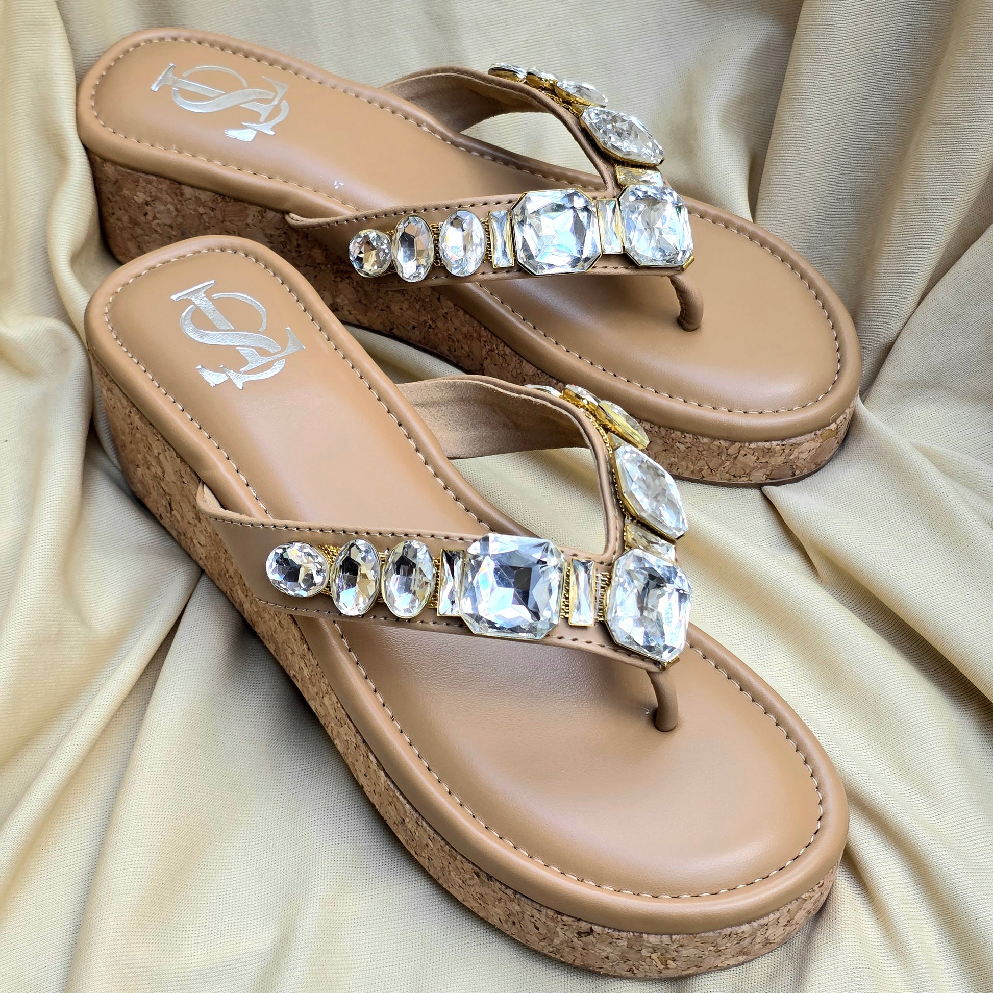 Designed with a soft nude base and dazzling crystal embellishments across the straps, these heels are perfect for weddings, festive nights, or elevating a casual chic look. Comfort meets glamour in every step.